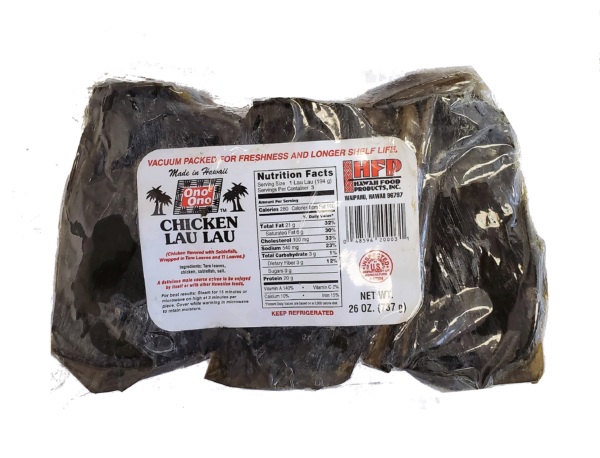 Savor the authentic flavors of Hawaii with HFP Chicken Laulau. Each tray includes three laulau, made with tender chicken wrapped in fresh luau (taro) leaves and ti leaves, then steamed until moist and flavorful. Conveniently vacuum-sealed to preserve freshness, this Hawaiian favorite is ready to heat and serve.