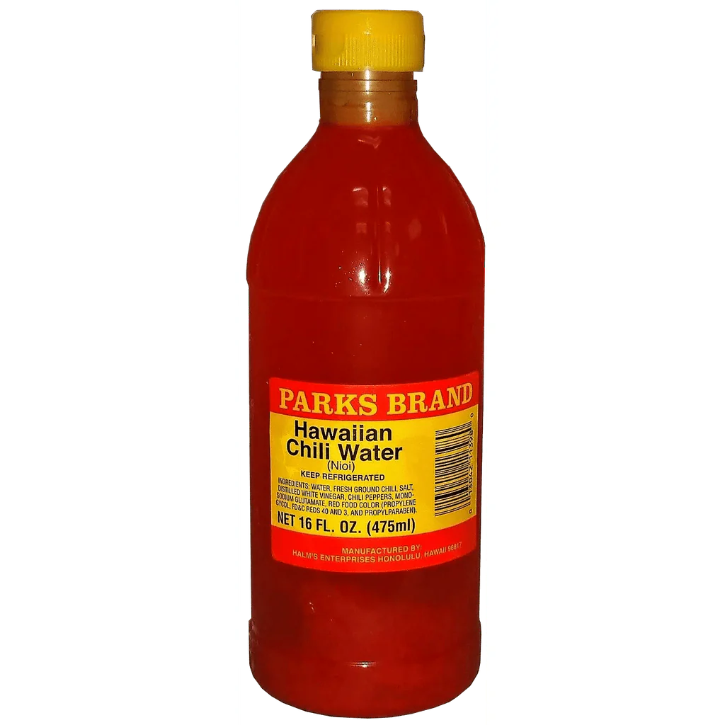 A must-have local condiment! Park’s Brand Chili Water adds the perfect spicy, tangy flavor to any dish. Made with red chili peppers, vinegar, and garlic, this Hawaiian-style hot sauce is great for poke, noodles, saimin, or plate lunches. Each case includes 12 bottles, 16 oz each.